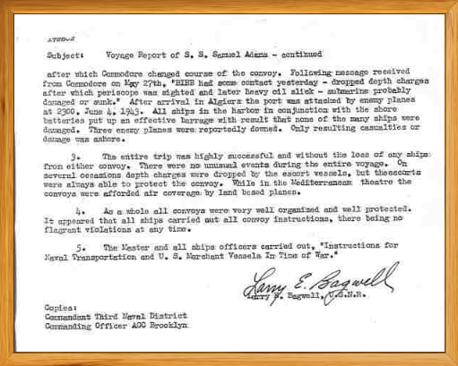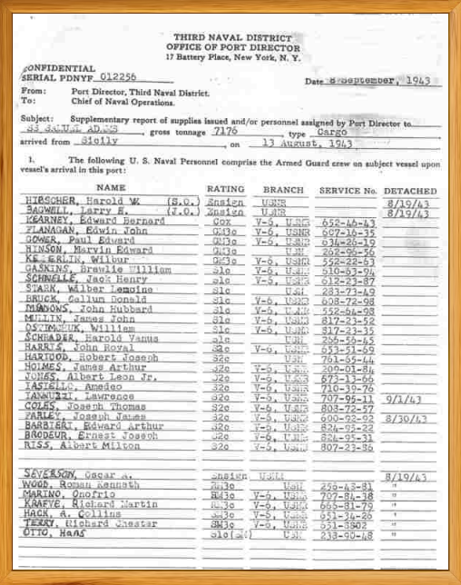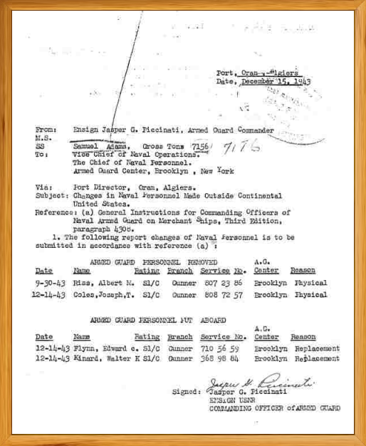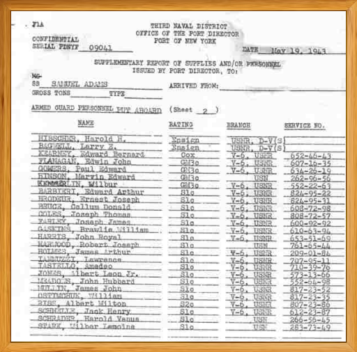 Armed Guard Center at Brooklyn, NY. He served on the SS Samuel Adams and was then