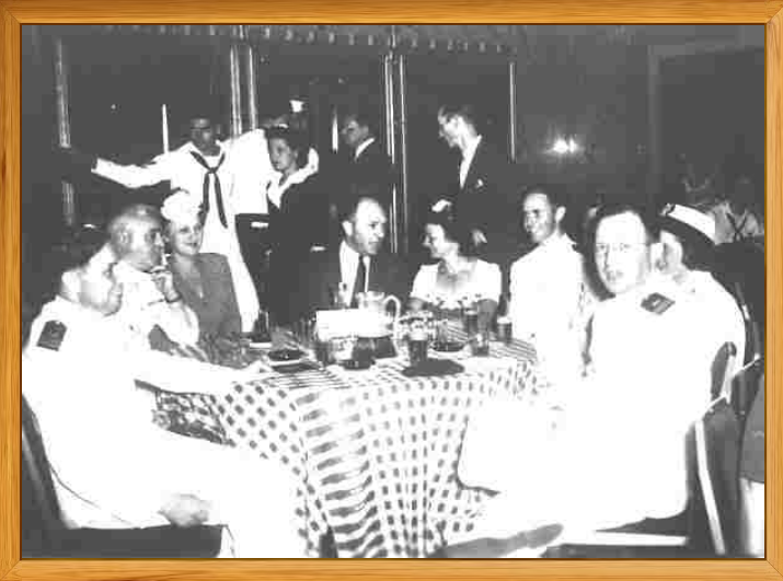 Picture below is Brooklyn Naval Armed Guard Center Officers at Ships Company Dance at Waldorf Astoria Hotel August 13, 1943. Left to right are Lt William J Pitt, Commander William J Coakley, Mrs Coakley, next four unknown and far right Lt Bernard M Klivans