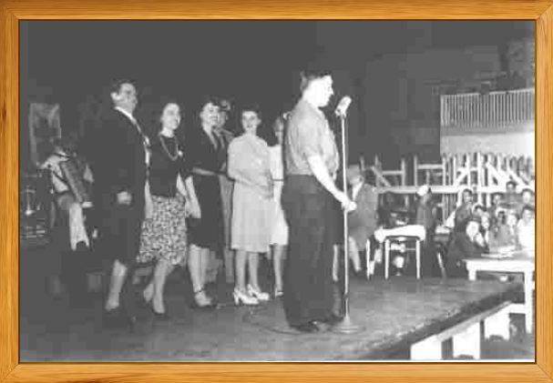 Picture below is Hiram Sherman, BM2C, leading a Red Cross show at Brooklyn Armed Guard Center August 1943