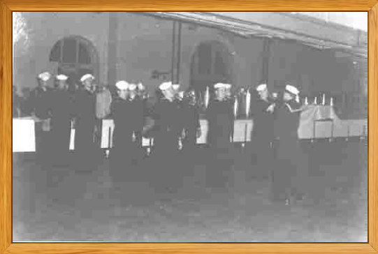 Picture below is Brooklyn Naval Armed Guard Center Drum and Bugle Corps on the main deck, October 1943