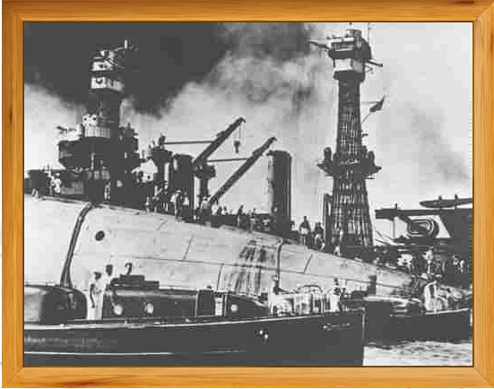 Picture below is The USS Oklahoma on her side 12/7/41 (Bonus Picture)