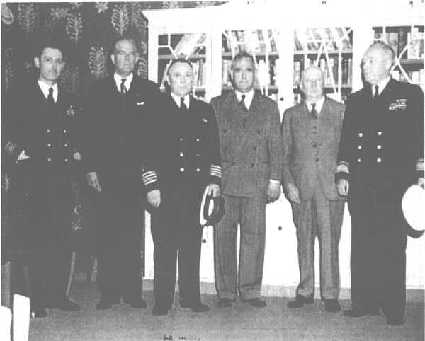 Pictured below are, Left to Right: Admiral G D McClintock, Albert V Moore*, Captain Sadler, William Binder Sr, Emmet J McCormack*, and Admiral Riggs at a Banquet at the Waldorf Astoria in honor of the return of the SS Brazil to Service (* Owners of the shipping line, MooreMack)