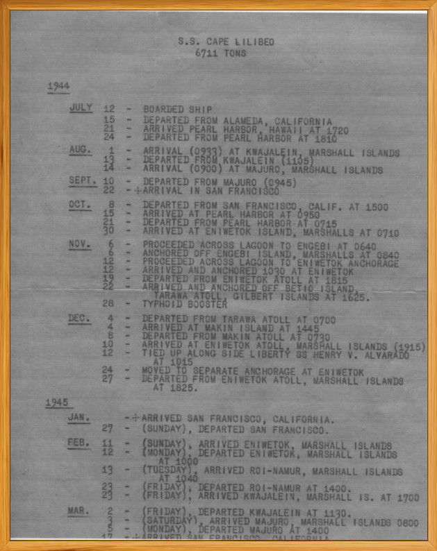 SS Cape Lilibeo Voyage - 1944