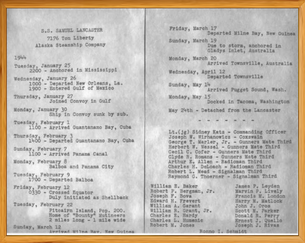 SS Samuel Lancaster Voyage