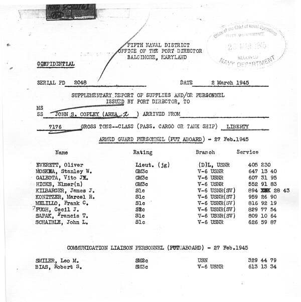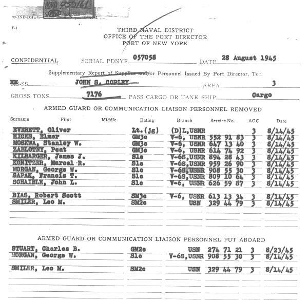 SS John S Copley Click here if you came from Marcel's Page Click to return to Reports Index Page Return to Home Page