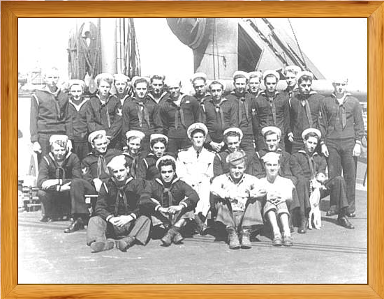 Picture Below: SS Rachel Jackson gun crew in Port Said, Egypt. Top Row (L to R) Andrus, Floyd Elmore, Harney, Grady, Ivanovich, Elli, Schultz, Shivers, Bruno, Self, Grife, Way, Earl Flood, Charles Thayer and Meyers. Second Row (L to R) Franks, Shafer, Schedler, Sapien, G P Powell, Shaffer, Stewart, Dean Tackitt (on his 18th birthday, with dog. Bottom Row (L to R) Clifford Frye, Henry Arizmendi, Thomas and Haber.