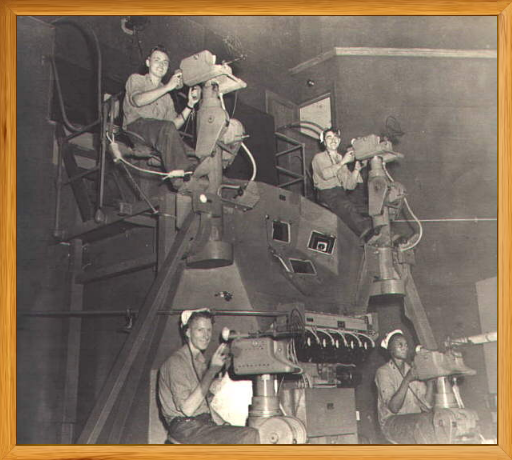 The picture below is of the guns used to fire at the planes going by. Hits were scored on the counter. Elmer is at the upper right gun.