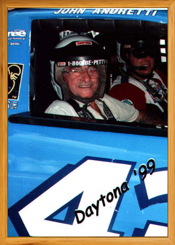 The picture below is of Elmer Rago in the Richard Petty race car on his 83rd birthday, zipping along at 175 miles per hour