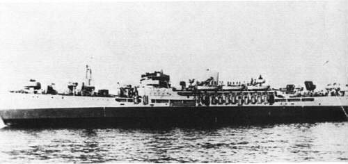 SS James Fenimore Cooper, 1945, at anchor off Saipan