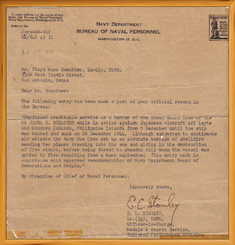 Floyd served honorably in the WWII Navy Armed Guard Service. He was assigned