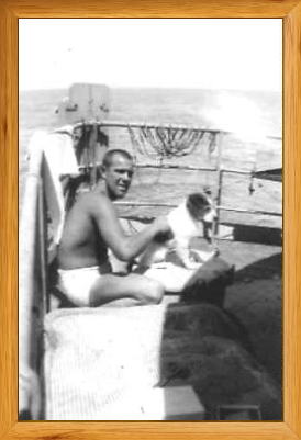 Pictured below are a sailor and his dog on the SS John Fitch