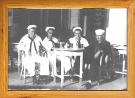 Pictured below in Port Said, Egypt, are L to R: Frank Nuneviller, Bernard Marro, Gerald Cleays (sp), and William Heath.