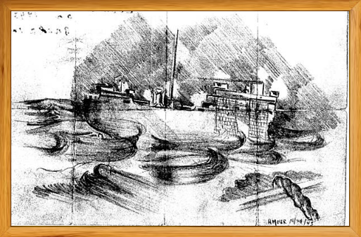 Picture Below: Drawing of the John P Gaines by a member of the rescue ship