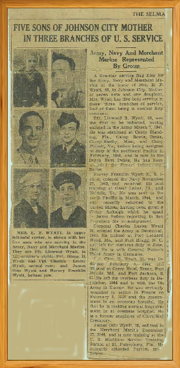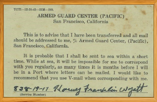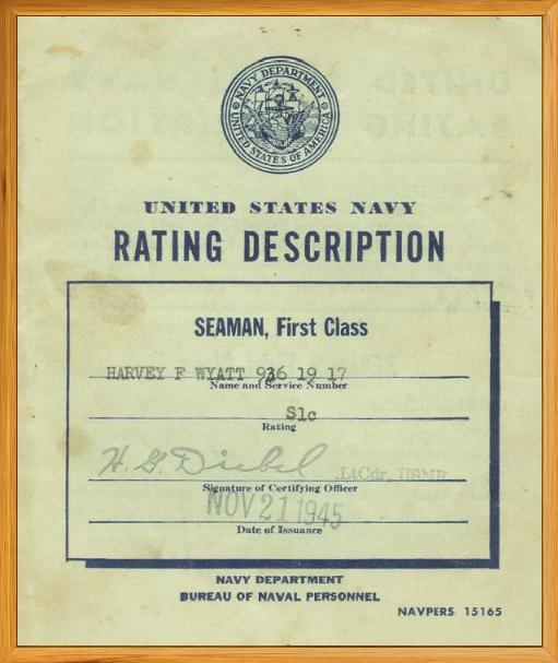 Harvey Franklin Wyatt was born 16 February 1913. He joined the US Navy
