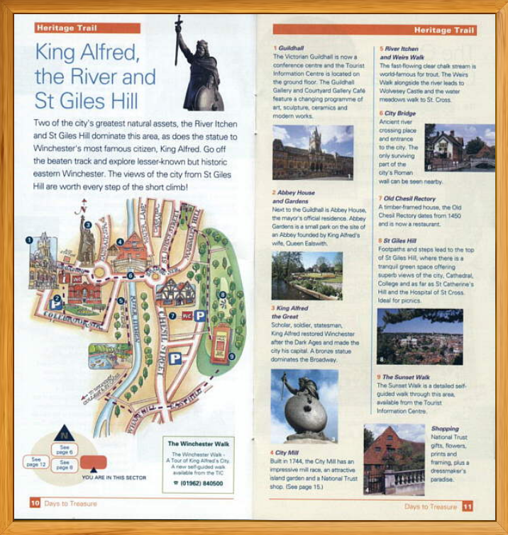 Winchester, England. King Alfred, the river and St. Giles Hill