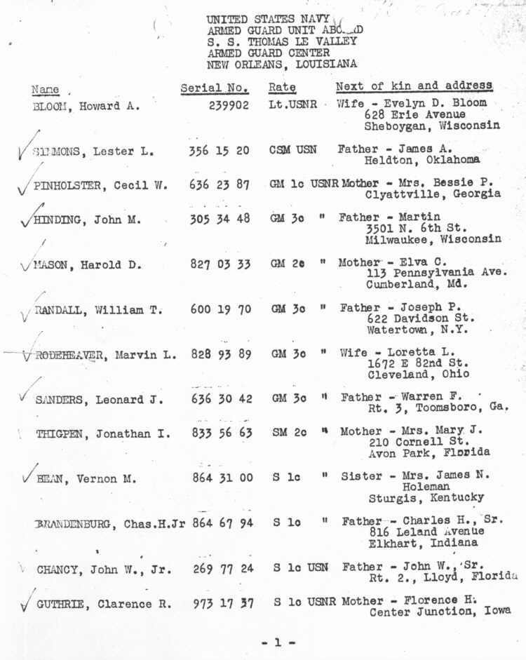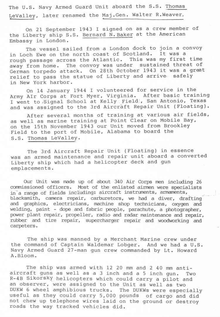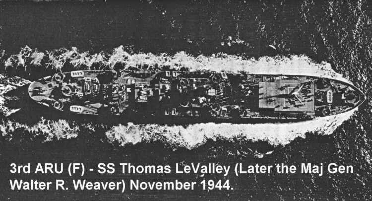 aboard the SS Thomas LeValley — later renamed the Maj Gen Walter R. Weaver, in
