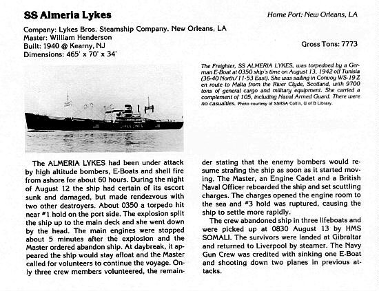 Information on the SS Almeria Lykes.
