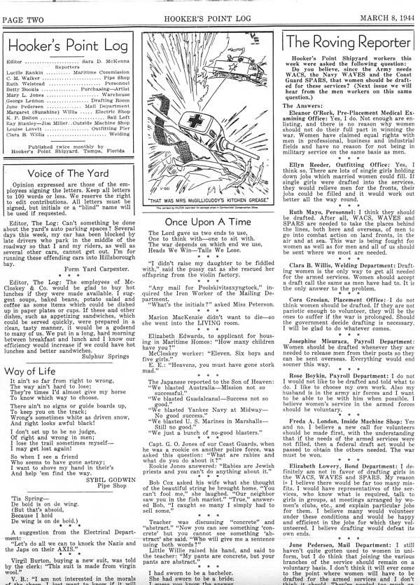 Hooker's Point Log