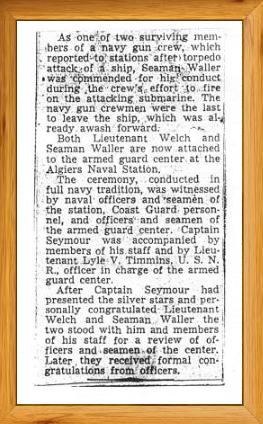 USAT Merrimack when it was torpedoed by an enemy submarine 9 June 1942. His