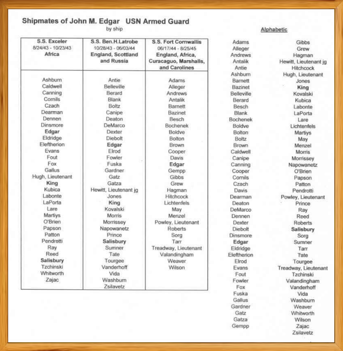 John served in the World War II Navy Armed Guard, honorably, after Boot Training