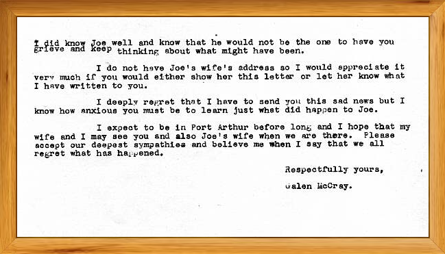 Joseph R Thomas, Sr was the Radio Officer aboard the SS Connecticut and was killed when the ship was torpedoed and sunk. He served on the SS Connecticut from 31 March 1942 to 23 April 1942 and was killed in the prime of his life. His son, Joseph R Thomas, can be contacted by email at CAROLJO@FIDALGO.NET.