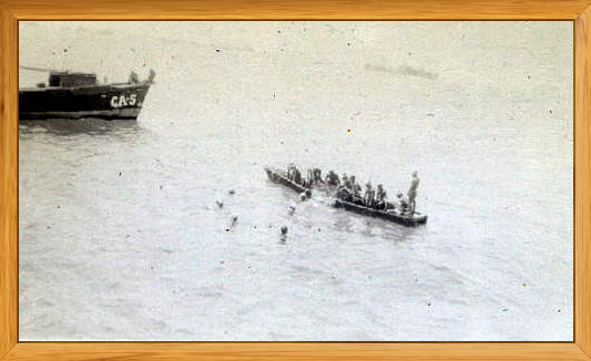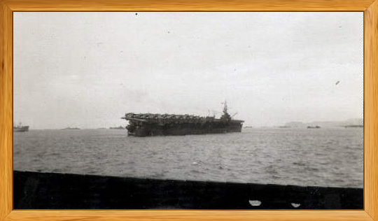 Pictured below is believed to be the carrier USS Franklin making a hard turn into anchorage.