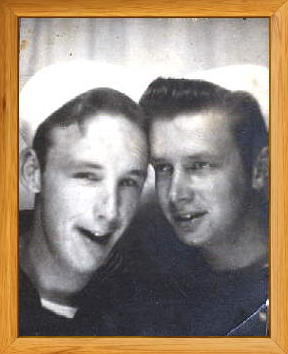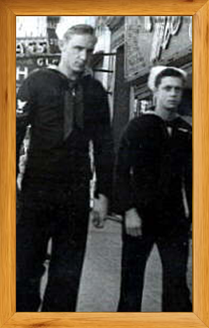 Left below: Cookie - Cook on the SS Seaman A. Knapp and Right below: Lester and his friend "Flags" Benedict on a pass in Seattle, Washington. Seattle survived