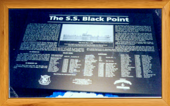 This plaque placed at the Point Judith, RI, Coast Guard Station, in memory of the eleven Merchant Marine and one Armed Guard KIA when the S.S.Black Point was torpedoed just three miles off the coast of Rhode Island on May 5, 1945. The Black Point was the last Merchant ship sunk in the North Atlantic during WWII.
