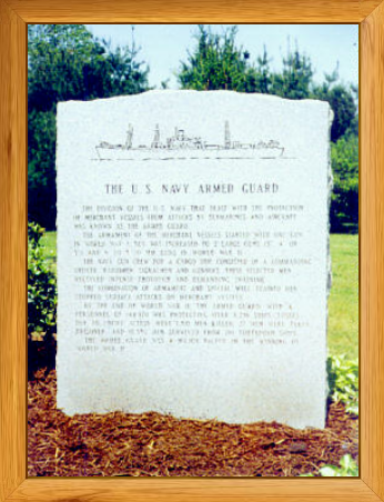 This monument site is located at the main entrance to the Bourne National Cemetery, in Bourne, Massachusetts. This monument was funded and erected by the New England Chapter of the WW-II U.S. Navy Armed Guard members.