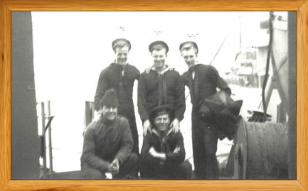 Picture Below: This is a picture of some of the Armed Guard crew on one ship. The man under the X is Richard Lovejoy, the man under the XX is remembered by 'Blimp' and the man under the XXX is a great friend named Staneonis. The others are not identified.