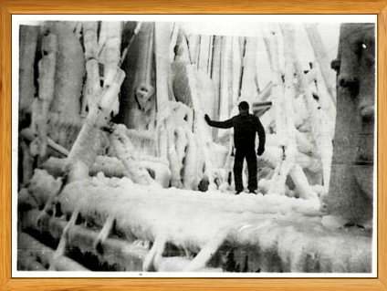 Picture Below: This is a picture of one of Richard's ships, showing how it iced up in the North Atlantic.