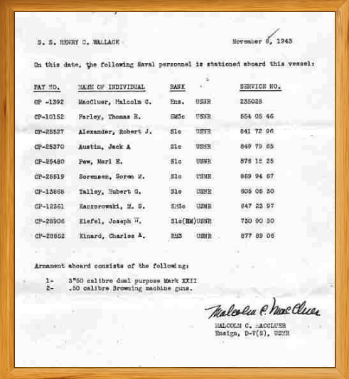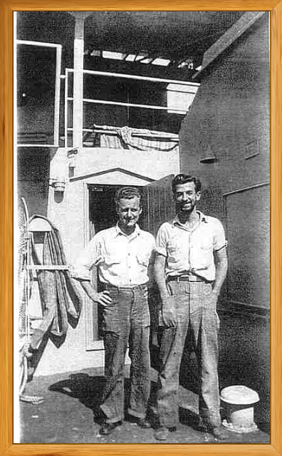 SS George Sterling - Front row 3rd from left is William D Bush; Second row 4th from left is Waldemar Holnberg; 6th is Robert J. Alexander, 7th is Richard Bagwill. Third row 2nd from left is Roy Beall and 4th from left is Wallace Bjornstad. Others not remembered.