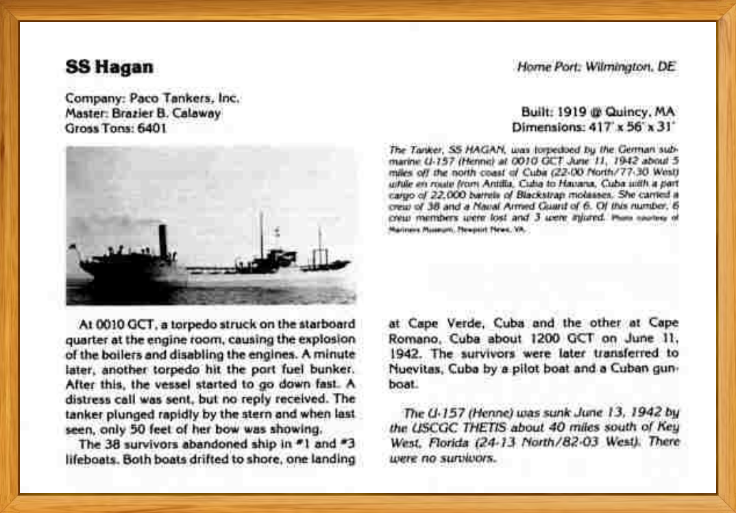 SS Hagan Sinking report - Courtesy of Captain Arthur Moore, "A Careless Word -- A Needless Sinking"