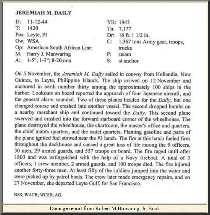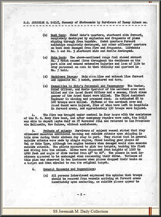 delayed. The total casualties on the Daily were about 250 killed, wounded