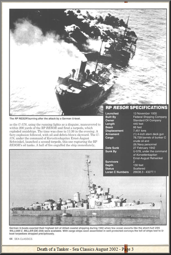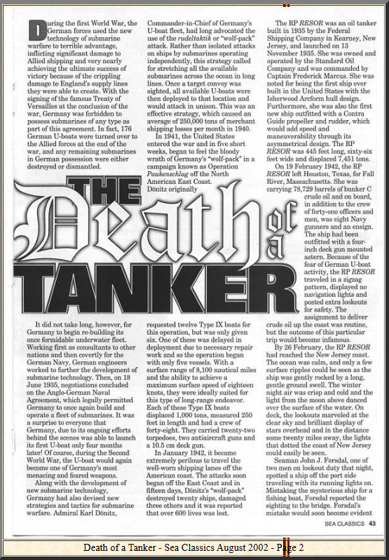 Death of a Tanker - SS RP Resor - Sea Classics August 2002 - Subscribe to this Great Magazine!!!