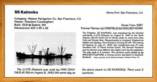 William Billy McKeon served in the Naval Armed Guard in WWII. He served on the SS Bushranger and SS Kaimoku. He boarded both by gangplank and left both swimming for his life.